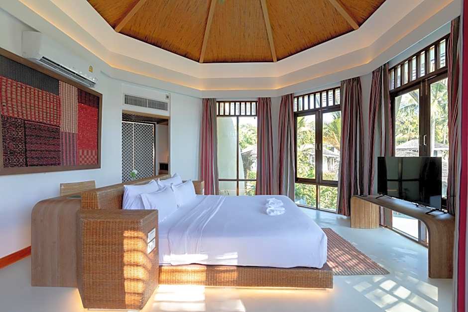 Boasting its own private pool, this large thatched-roof villa features full-length windows with ocean views, an Illy coffee maker and a spacious bathroom.